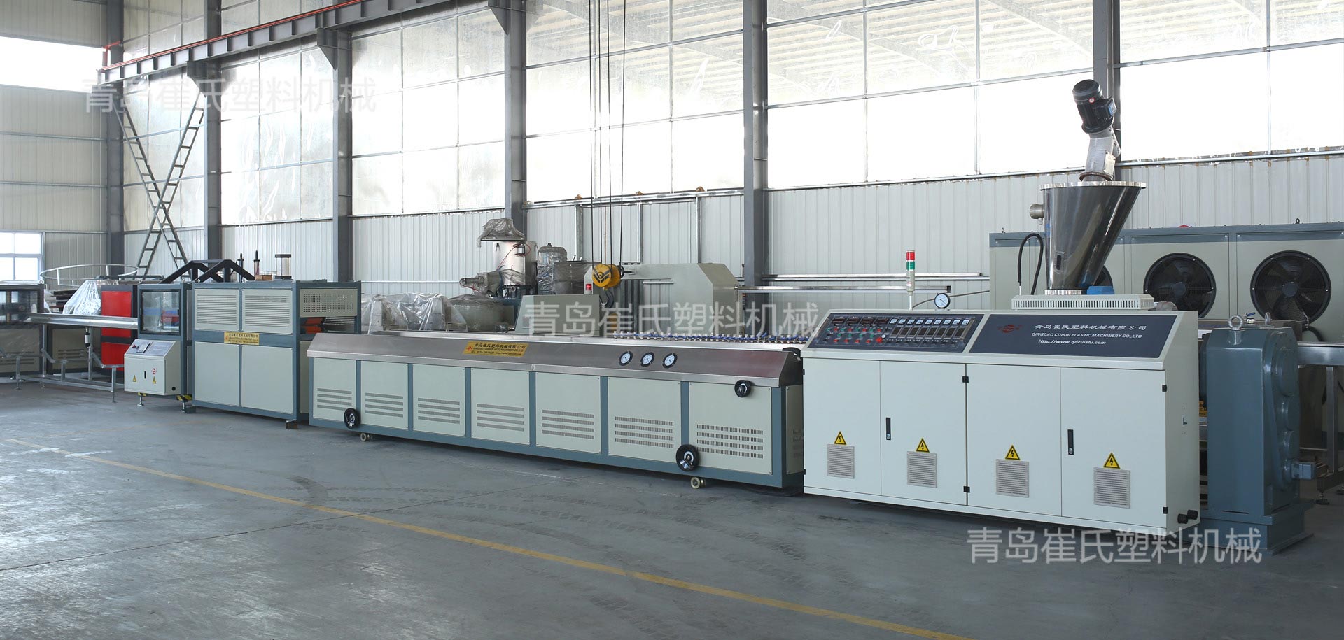 青島崔氏塑料機械:生產(chǎn)的預應力塑料波紋管設(shè)備、電力管設(shè)備、塑料波紋管設(shè)備、汽車線束波紋管設(shè)備、PPR、PE、PVC、PERT管材設(shè)備及其它各種管材設(shè)備、塑料型材設(shè)備、塑料蜂窩板設(shè)備, 遠銷:歐州,獨聯(lián)體,南美洲,中東,東南亞,大洋州,非洲等地的20多個國家和地區(qū)。